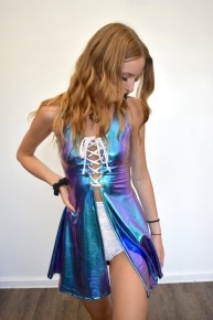 Lace-up Open-front Dress oil Slick Holographic Rave _ Etsy