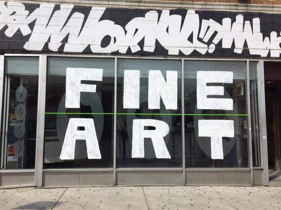 Beauty Bar’s current shop front, emblazoned with the words “Fine Art” in protest to the current court case pending with Cook County.