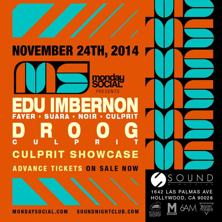 Tonight, heâll be alongside one of LA’s favorite local group Droog to rock the famous Monday night party. Every time he comes back into town itâs guaranteed to be a night of beats and good vibes. Enjoy this mix from Edu Imbernon, and get ready for a great night of beats from the Spaniard. Check out our events tab to RSVP for tonightâs festivities.