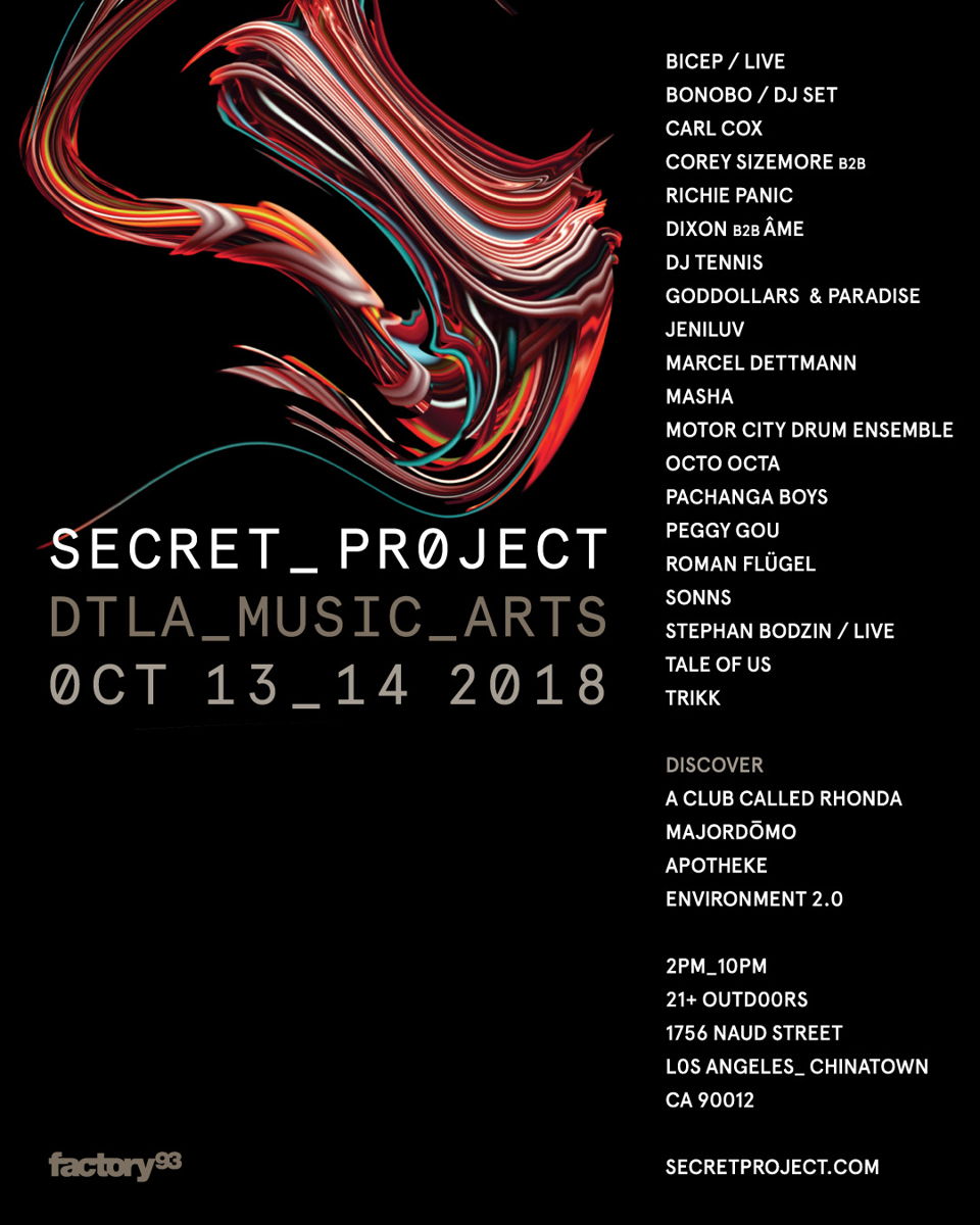 Secret Project is presented by Factory 93, who have a long-standing commitment to showcasing forward thinking music and culture at large-scale shows in Los Angeles, and uniquely programmed stages at some of the world’s best festivals. Factory 93 was a pioneer in this neighborhood, having produced events in the area since 2016.