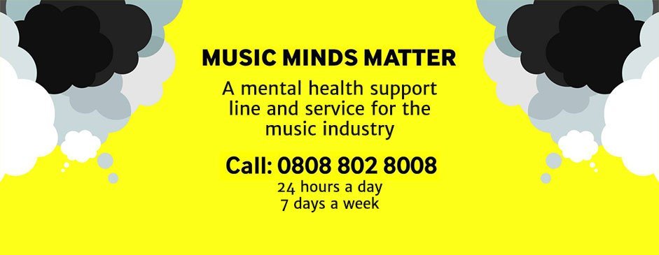 Operating 24 hours a day, seven days a week, Music Minds Matter is a support line and service for the whole UK music community. Call 0808 802 8008.