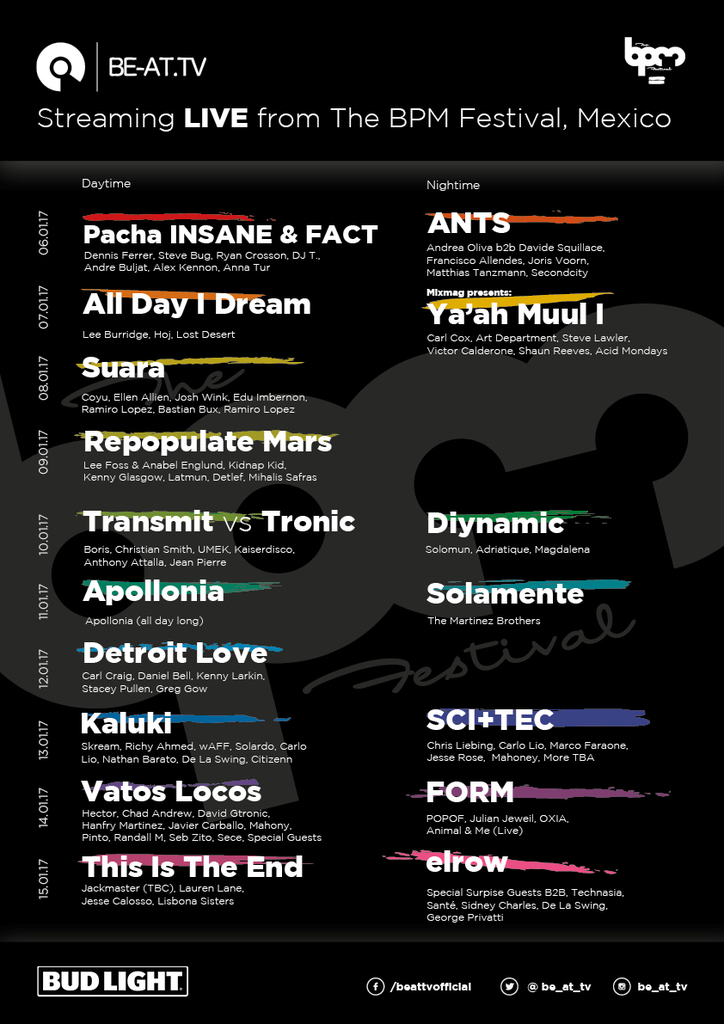 Meantime do not forget that you can enjoy the 10th Anniversary of The BPM Festival via live streaming all week thanks to Be-At.TV: