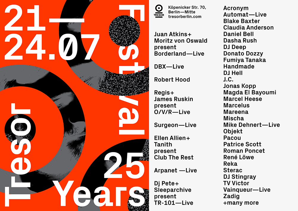 In commemoration of the club’s 25th Anniversary, Tresor is hosting its own festival celebration at the end of July.
