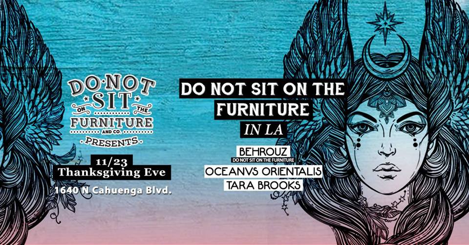 On Black Wednesday, November 23rd, Underrated Presents will be showcasing Miami’s Do Not Sit On The Furniture with a special night at their weekly Clinic Wednesdays party series held at Couture in Hollywood. Performing will be Do Not Sit’s owner and curator Behrouz, Oceanvs Orientalis and Los Angeles’ own Tara Brooks.